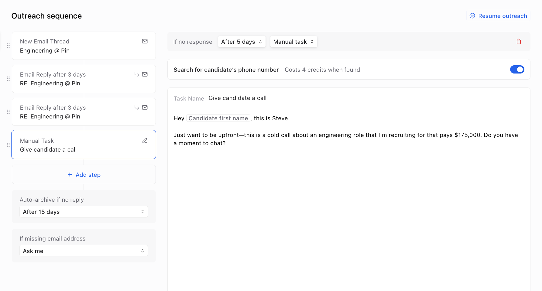 You can now automatically search for a candidate’s phone number at the manual task step, so it’s ready when you need it.
