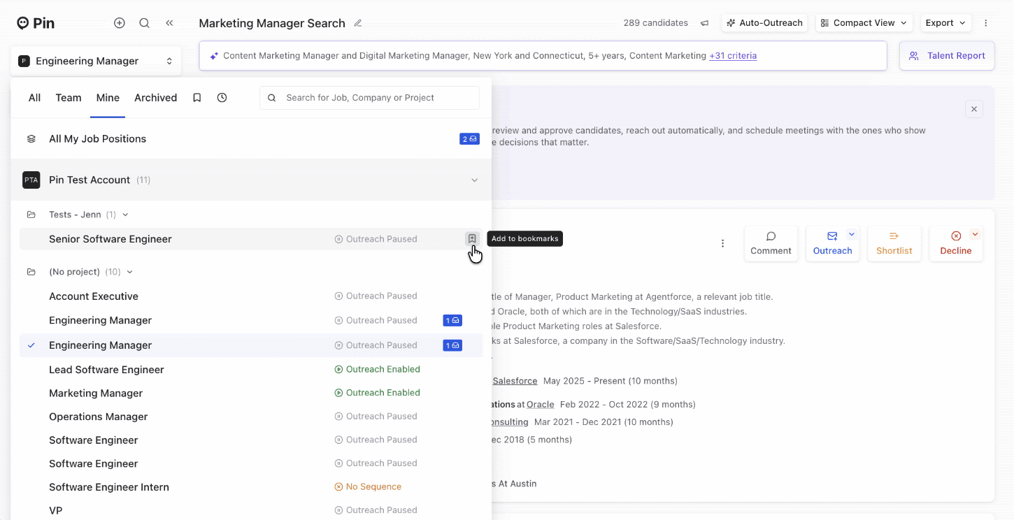Filter jobs directly in the Chrome extension when adding candidates to a shortlist or outreach so it’s easy to select the right role every time.